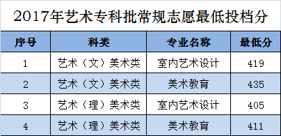漳州城市职业学院2017年艺术专科批常规志愿最低投档分