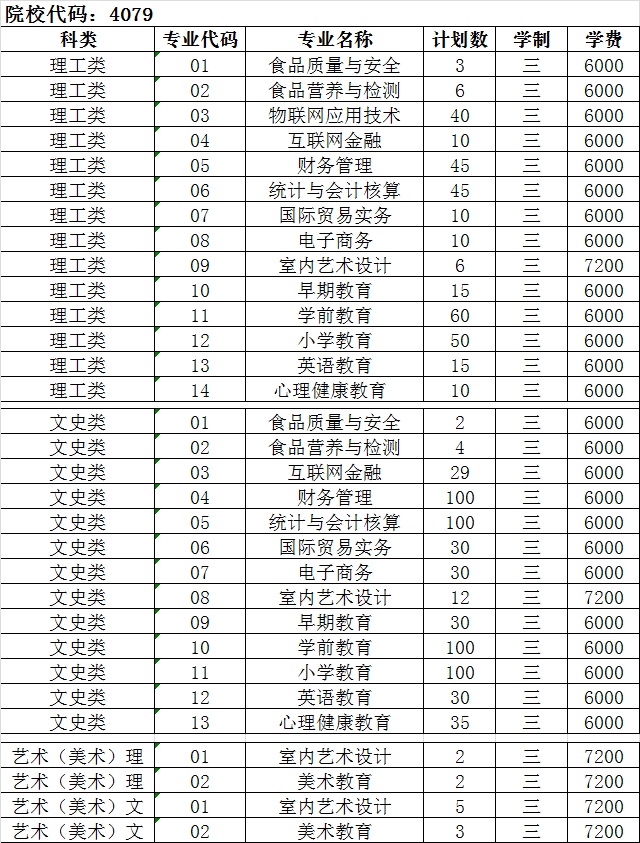 三、院校代码:4079,各专业代码如下: