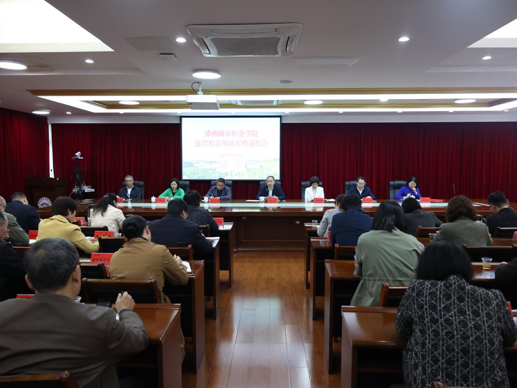 2025年12月19日,漳州城市职业学院召开意识形态领域形势通报会,通报学校当前意识形态领域形势,安排部署下一阶段工作。学校党委副书记、校长翁文主持并讲话。党委委员、各部门党政负责人参加会议。会上,学校党...