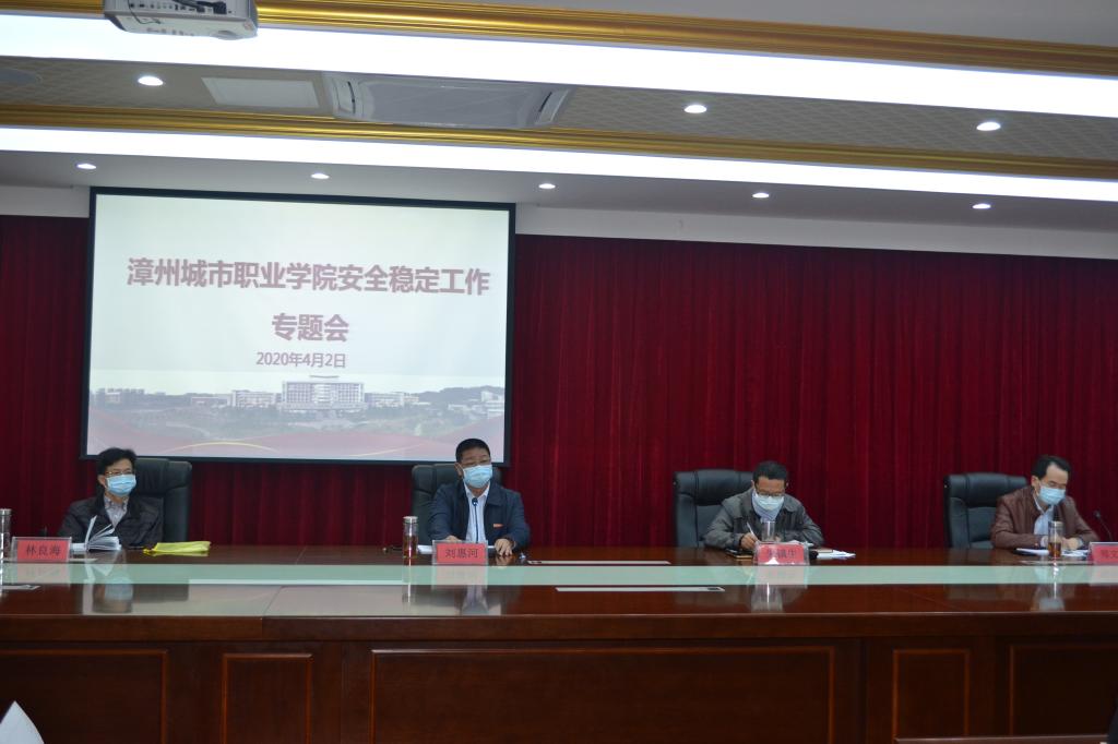 2020年4月2日,漳州城市职业学院召开安全稳定专题工作会议。院长刘惠河主持会议并讲话。党委副书记朱镇生作具体部署。副院长林良海、郑文平等参加会议。会议分析了当前面临的新情况、新态势,部署下一阶段的...