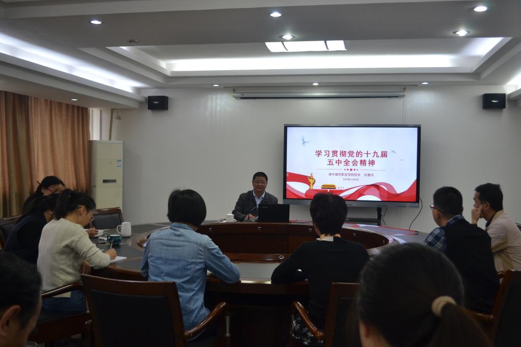 2020年12月4日下午,漳州城市职业学院院长刘惠河到机关第二党支部s宣讲党的十九届五中全会精神,机关第二党支部全体党员及所在人事处、财务处的干部职工聆听了宣讲。刘惠河强调,要认真学习贯彻党的十九届五中...