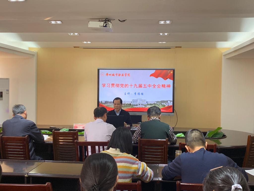 2020年12月16日下午,为深入学习宣传贯彻党的十九届五中全会精神,漳州城市职业学院经济管理系在系会议室举行党的十九届五中全会精神宣讲报告会。学院党委委员、副院长郑文平作题为以“双高计划引领学院高质量发...