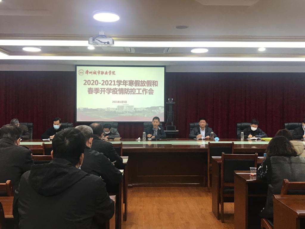 2021年1月5日下午,漳州城市职业学院在怀仁楼4楼会议室组织收听收看福建省教育厅、漳州市教育局2020-2021 学年寒假放假和春季开学疫情防控工作视频会,学院领导班子成员,各处(室)负责人、各系(部)书记、主任...