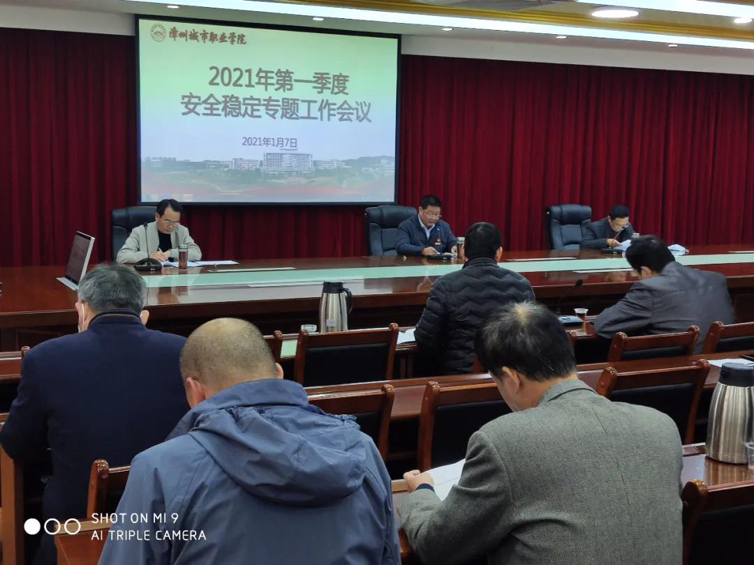 1月7日下午,漳州城市职业学院在怀仁楼4楼会议室召开院长办公会(扩大)暨2021年第一季度安全稳定专题会议,会议由学院党委副书记、院长刘惠河主持,学院院长办公会成员、各处(室)负责人、各系(部)书记参加了...