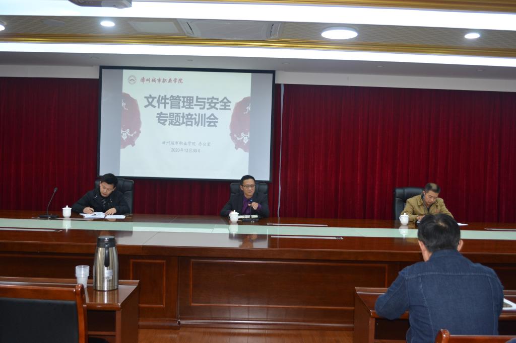 2020年12月30日下午,为切实做好上传下达、档案安全管理等工作,漳州城市职业学院召开文件管理与安全专题培训会。学院党委副书记朱镇生,学院办公室全体成员及各系(部)办公室主任、各部门信息员、档案管理...