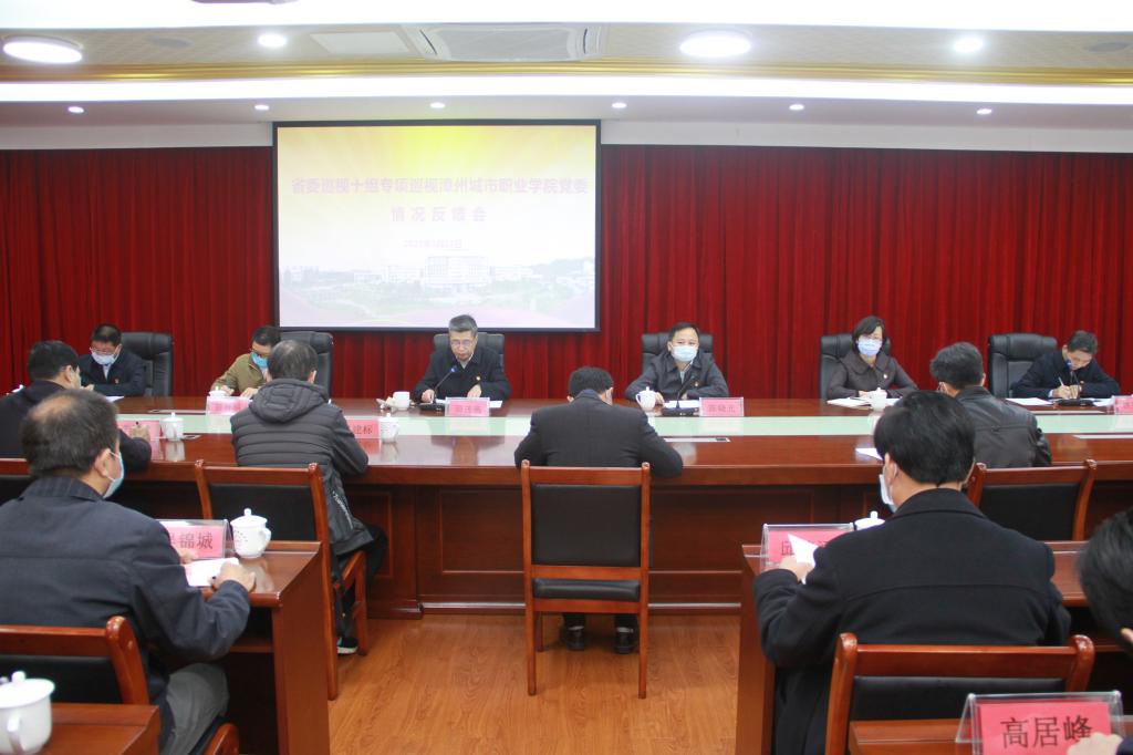 2021年1月21日,省委巡视十组向漳州城市职业学院党委反馈巡视情况。省委巡视办副主任陈晓光同志主持召开向学院党委书记洪亚勇同志的反馈会议,出席向学院党委领导班子反馈巡视情况会议,对巡视整改提出要求...