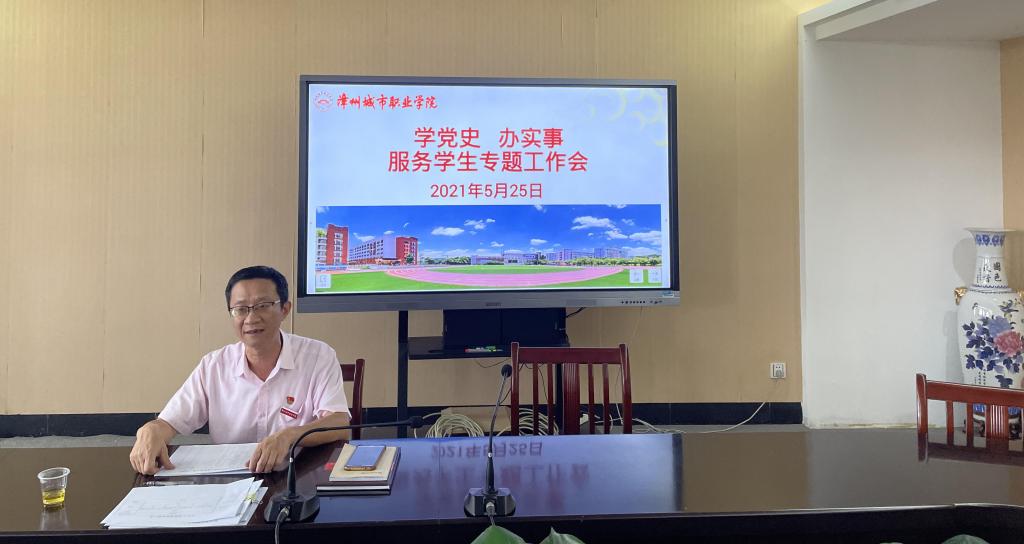 2021年5月25日,学院党委副书记朱镇生在怀仁楼七楼会议室主持召开“学党史 办实事”——服务学生专题工作会议,学生工作处、后勤管理处、安全与保卫处等相关职能部门人员及通鑫学生公寓服务有限公司、天利仁和物...