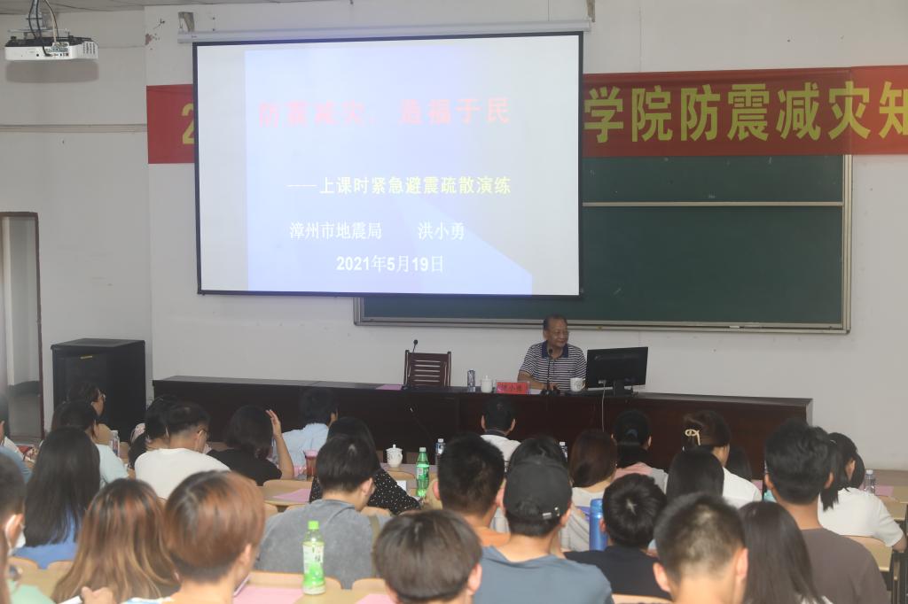 为普及地震避险救护知识,提高师生的应急反应和自救能力,2021年5月19日下午,漳州城市职业学院开展了防震减灾知识培训及应急疏散演练。漳州市地震局副局长黄文斌、应急科科长吴文彬,市公安局县前派出...