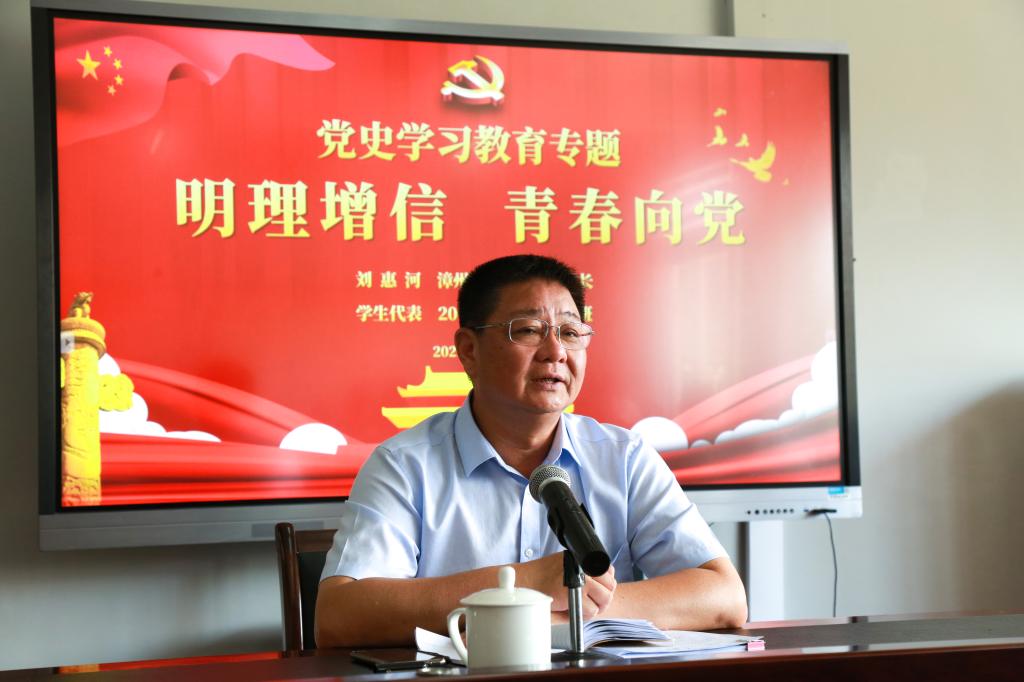2021年5月26日下午,漳州城市职业学院院长刘惠河在怀仁楼梯教三为公费师范生讲授了一堂题为《从党史中汲取力量 用信仰书写青春》的思政课。小学教育专业和学前教育专业2019级公费师范生150人参加了听讲,教师教...