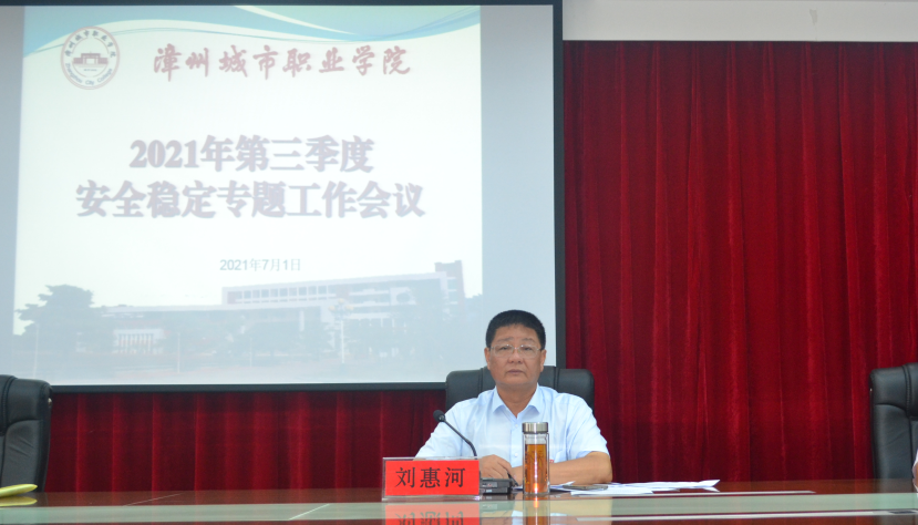 2021年7月1日下午,漳州城市职业学院在怀仁楼四楼会议室召开院长办公会(扩大)暨2021年第三季度安全稳定专题工作会议,会议由学院院长刘惠河主持。学院院长办公会成员、各处(室)负责人、各系(部)书记参加了...