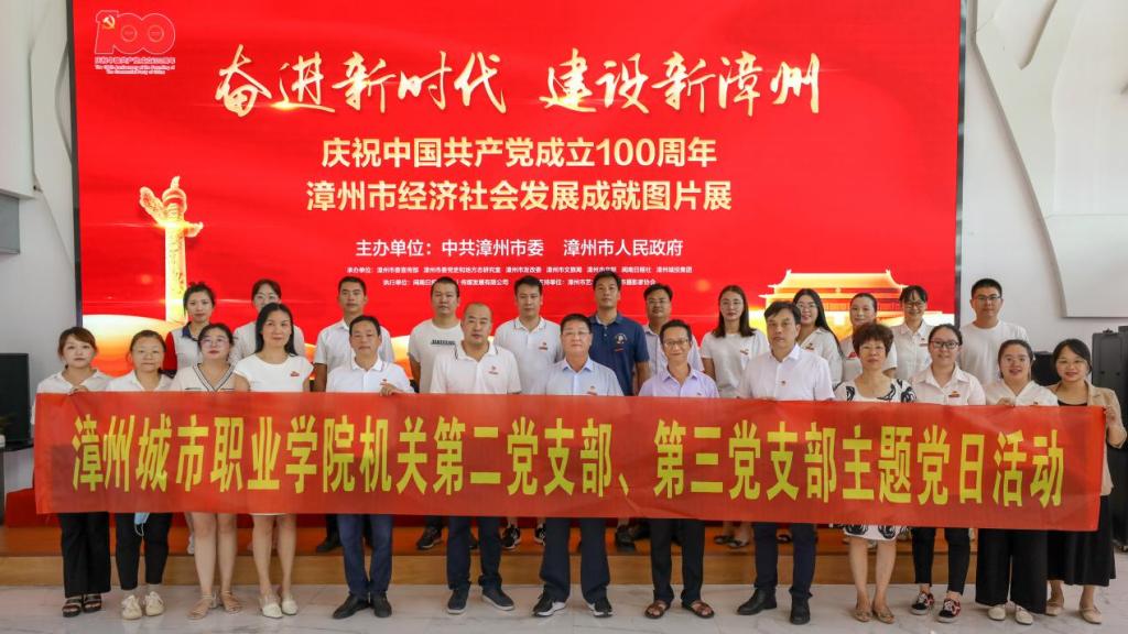 2021年7月23日,漳州城市职业学院机关第一党支部组织支部党员开展党史学习教育主题党日活动,参观“奋进新时代 建设新漳州”庆祝中国共产党成立100周年——漳州市经济社会发展成就图片展和中国女排腾...