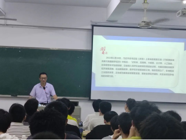 2022年5月9日,漳州城市职业学院党委副书记朱镇生以《打造数字经济新优势》为题,在博学楼106为小教(五专)191、192班学生上思政课。 朱镇生从“数字经济的内涵与基本特征”“适应数字时代的战略抉择”“发展数...