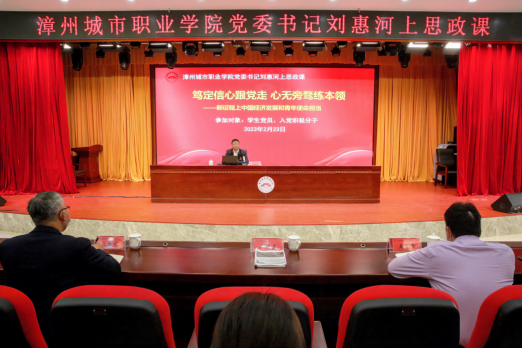 2023年2月23日下午,漳州城市职业学院党委书记刘惠河在丹霞厅为学生党员、学生入党积极分子讲授题为《笃定信心跟党走 心无旁骛学本领——新征程上中国经济发展和青年使命担当》的思政课。这是开学第一堂思政课,...